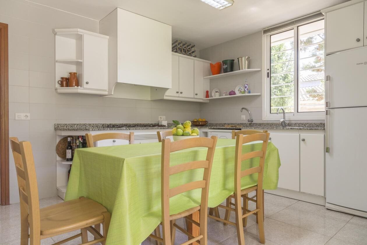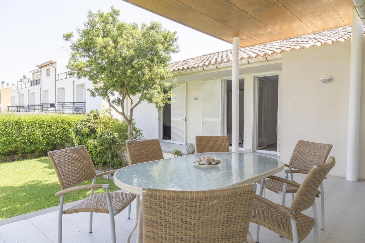 Casa de vacaciones para 8 personas con un jardín privado a 200m del mar en Port AlcudiaBienvenidos en la casa de Port Alcudia a 200m del mar para 8 personas con un jardín privado donde puede tomar el sol en tumbonas o preparar barbacoa y servirla en la terraza equipada con una mesa con sillas.El salón-comedor está equipado con un sofá cómodo donde puede ver la televisión por satélite, DVD con sus niños o leer su libro favorito. La zona de comedor cuenta con suficiente espacio para pasar comidas con toda la familia.La casa cuenta con 4 dormitorios y 2 baños (uno es en-suite). Hay dos dormitorios con cama de matrimonio (uno de ellos tiene un baño en-suite con bañera) y dos dormitorios con dos camas individuales. Otro baño está equipado con ducha. Para su bebe se puede preparar una cuna y una trona. La cocina está equipada con los utensilios necesarios para preparar las comidas ricas.La casa cuenta con una plaza de aparcamiento en el garaje.se usa toda la casaEstamos disponibles 24 horas en su disposición durante de su estancia para cualquier preguntaEl barrio es turístico ya que se encuentra todos los tipos de servicio. El mar está al lado. Se puede coger el autobús hacia Pollenca, Can Picafort o Palma. No se necesita tener el coche.Distancias:Playa: 200 mBar, restaurante: 50 mSupermercado grande Eroski: 500 mAeropuerto: 59 kmAutobús: 100 mHospital: 4 km