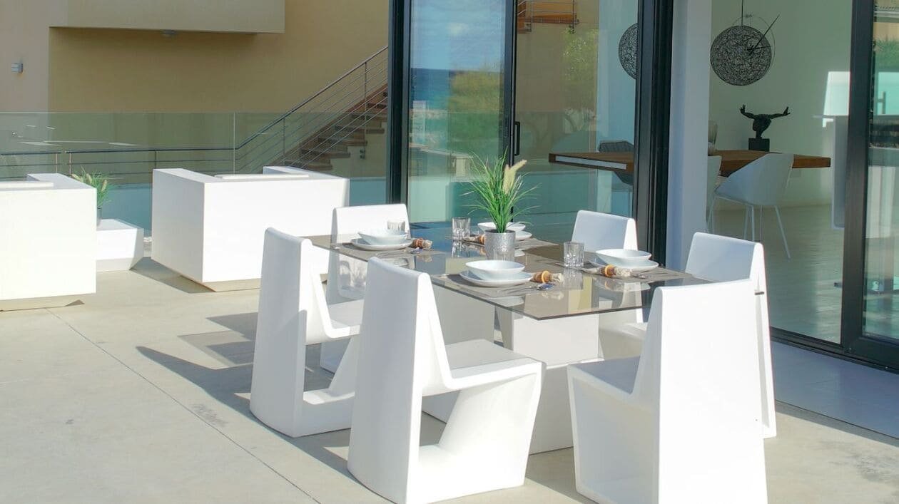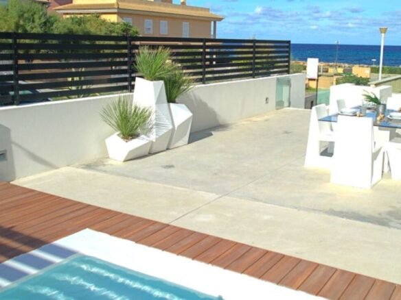 Alquiler Diciembre-MarzoEsta moderna villa se encuentra en la encantadora localidad de Son Serra de Marina, ofreciendo una deslumbrante vista al océano desde el lado este de la isla de Mallorca. Con un diseño cuidadosamente planificado, esta casa presenta un salón espacioso, una cocina completamente equipada y tres dormitorios, cada uno con una lujosa cama king-size, acompañados por cuatro baños, proporcionando un refugio ideal para hasta seis personas.Entre los servicios adicionales se incluyen conexión Wi-Fi de alta velocidad, aire acondicionado para garantizar una temperatura confortable en todo momento, un televisor para el entretenimiento en el hogar y una práctica trona para las familias que viajan con niños pequeños.Disfruta del aire libre en la zona privada de la villa, donde puedes deleitarte con una taza de café por la mañana en una de las dos terrazas, ya sea la cubierta o la descubierta, o relajarte con un refrescante cóctel junto a la piscina mientras preparas una deliciosa barbacoa en el jardín amueblado con tus seres queridos.La playa más cercana, Platja de l'Home Mort, está a solo 410 metros de distancia, lo que permite acceder a ella en pocos minutos a pie. Además, muchas otras playas a lo largo de la costa se encuentran a tan solo 10-15 minutos en coche, como Platja de Na Patana y Playa de Muro, ofreciendo una variedad de opciones para disfrutar del sol y el mar.La villa se beneficia de una ubicación conveniente, con restaurantes, cafeterías y bares a solo 5 minutos a pie, brindando la oportunidad de explorar la deliciosa cocina local y disfrutar de la animada atmósfera del pueblo. Para mayor comodidad, el supermercado más cercano está a solo 450 metros de distancia, accesible en un breve paseo de 6 minutos o en un corto trayecto en coche de 2 minutos.Con plazas de aparcamiento disponibles tanto en la propiedad, con su garaje privado, como en la calle, esta villa garantiza una estancia sin preocupaciones en un entorno idílico de la isla de Mallorca.Se admiten mascotas bajo petición.Ten en cuenta que no se permite ningún tipo de fiesta o evento.Número de licencia: ETV7748 Nombre: ATZUR