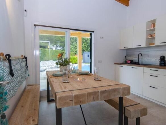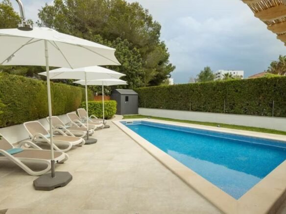 Descubre esta magnífica propiedad recientemente renovada en Port Alcudia, a solo 1 km de una deslumbrante playa de arena. Con capacidad para alojar hasta seis huéspedes gracias a su licencia de alquiler, esta casa destaca por su piscina triangular única de agua salada y un amplio espacio exterior ideal para disfrutar del sol malagueño. La zona cubierta junto a la piscina incluye un comedor y área de barbacoa perfectos para compartir momentos inolvidables al aire libre. En el interior encontrarás tres acogedores dormitorios: uno equipado con baño privado y los otros dos que comparten un cuarto ducha independiente, todos cuentan con calefacción por suelo radiante eléctrico e instalaciones modernas tras una reciente renovación. Minuciosamente amueblado, cada dormitorio ofrece abundante almacenamiento sin sacrificar estilo ni comodidad. El salón-comedor presenta cómodas áreas lounge decoradas con elegancia rústica gracias al suelo cerámico original y vigas expuestas. El corazón social es sin duda la cocina bien equipada adjunta que se conecta directamente mediante puertas corredizas hacia la terraza donde podrás relajarte o cenar mientras disfrutas las vistas. Al salir te darás cuenta que hay acceso directo desde el lavadero también hacia el jardín. Adicionalmente ,el portón eléctrico asegura privacidad garantizando así tu descanso. Totaliza además parking gratuito disponible fuera, de manera sencilla. Ya sea como residencia permanente o inversión turística, vivir aquí nunca había sido tan atractivo.