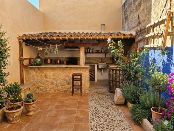 Se vende una casa de pueblo en Petra a 1 minuto caminando de la Plaza Major. La casa ha sido renovada hace 2 años y combina estilo mallorquín con la comodidad moderna. Tres plantas en total 107m2 construidos se distribuyen de la siguiente manera: entrando a la casa se aparece en un salón-comedor con la escalera a la primera planta y con salida a la cocina con el patio. En la primera planta se encuentra 2 dormitorios que comparten un baño, y en la segunda planta hay otro dormitorio con su baño privado y con la terraza. La casa contiene muchas antigüedades mallorquinas históricas.