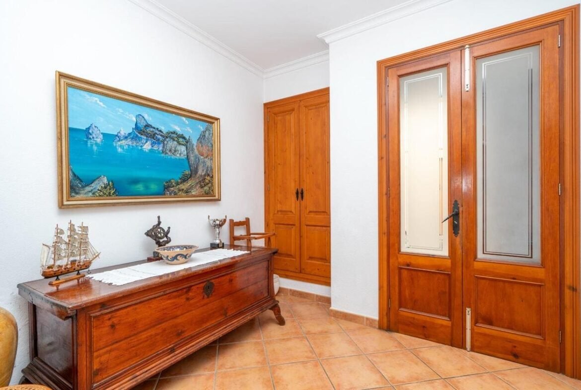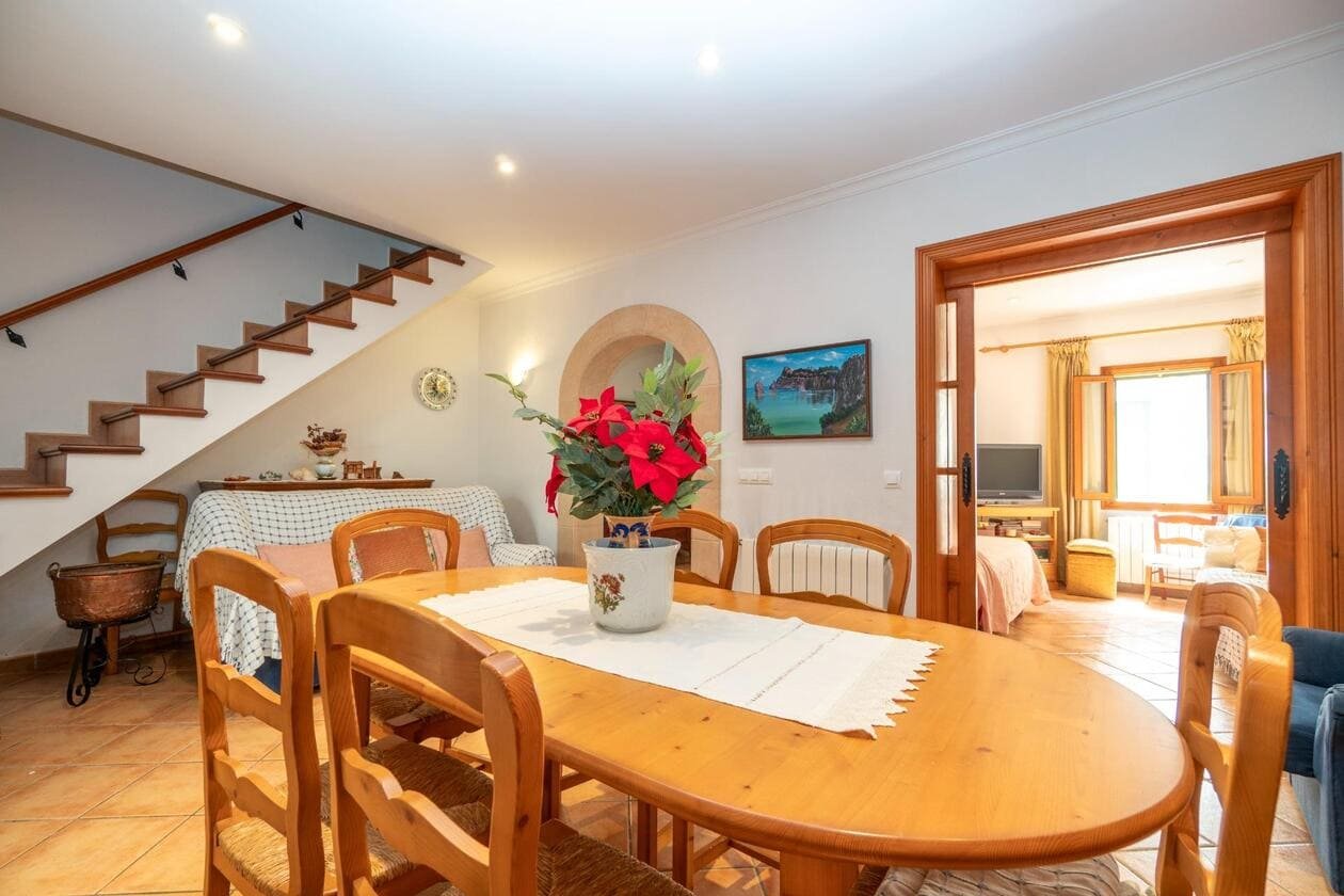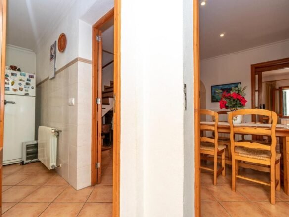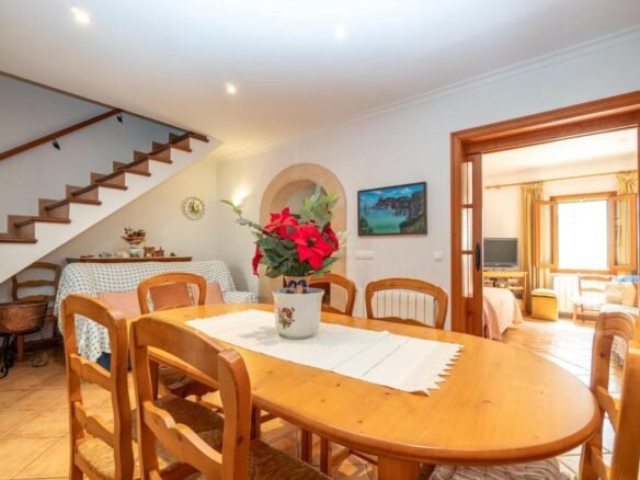 Esta encantadora casa ubicada en una calle tranquila cerca del Puente Romano en Pollença, y ofrece unas vistas preciosas a las montañas...Construida en 1970 y bien mantenida a lo largo de los años, esta propiedad ha sido parcialmente reformada y está lista para entrar a vivir. Al acceder a la casa, se encuentra un recibidor que incluye un armario empotrado y un arco de "marès", un elemento arquitectónico local con mucho carácter. Desde el recibidor, se accede a un luminoso salón-comedor equipado con aire acondicionado, un dormitorio individual, un patio con un baño, una cocina con despensa y la escalera que lleva a la primera planta...La primera planta consta de tres dormitorios (dos dobles y uno individual), un baño completo y una terraza. Un aspecto destacado de esta propiedad es su conexión a través de la terraza con otra construcción adyacente. Actualmente, esta edificación se utiliza como cocina exterior con chimenea y como trastero en la planta superior, pero tiene potencial para ser reformada y convertirse en espacio habitable adicional...La casa dispone de calefacción central de gasoil en todas las estancias y aire acondicionado tanto en el salón como en uno de los dormitorios. Con su encanto rústico mallorquín y su ambiente acogedor, esta propiedad representa una excelente oportunidad para disfrutar de la vida en Pollença...No duden en ponerse en contacto con nosotros para más información o para concertar una visita..