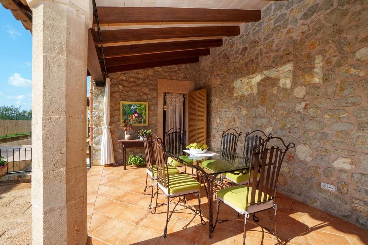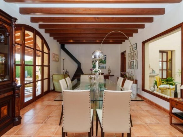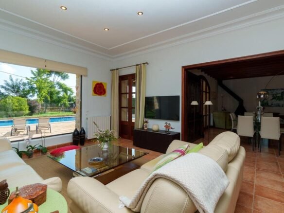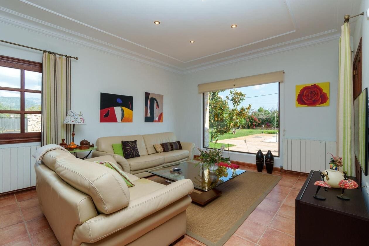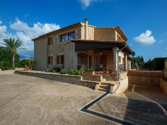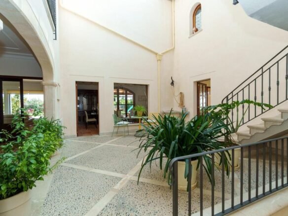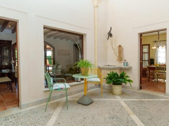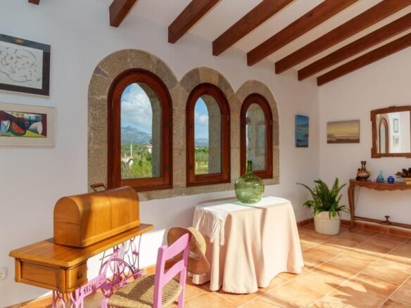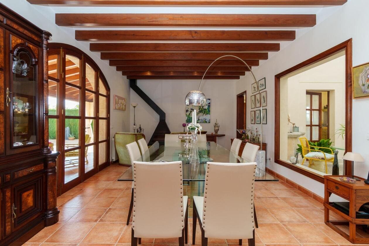 Espectacular Vivienda con Encanto Mallorquín, Piscina y Vistas a la Tramuntana..Se vende magnífica propiedad de 414,44 m² construidos en dos plantas, ubicada en una tranquila zona rural entre Inca y Lloseta, a pocos kilómetros de la autopista y con acceso por camino asfaltado. Construida en 1999 con materiales de alta calidad, combina el estilo tradicional mallorquín con todas las comodidades modernas...Distribución:..Planta sótano: Garaje cerrado con capacidad para dos vehículos, con escalera interior de acceso a la planta principal...Planta baja: Recibidor, cocina independiente, un baño completo, un dormitorio, sala de estar, y un amplio comedor con chimenea y vistas directas al patio central y a la piscina..El corazón de la vivienda es un auténtico patio mallorquín de guijarros, de 30 m², cubierto por un lucernario que baña de luz natural toda la casa, creando un ambiente acogedor y único...Planta superior: Cuatro dormitorios y dos baños completos. Todas las habitaciones se comunican a través de un amplio distribuidor con vistas al patio central, destacando los ventanales de piedra con espectaculares vistas a la Sierra de Tramuntana y a la piscina...Características destacadas:..Parcela rectangular de 6.000 m², totalmente cercada, con árboles frutales y amplias zonas exteriores...Piscina salina de 72 m² (6x12) con zona de terraza...Zona trasera pavimentada con capacidad para aparcar hasta 15 vehículos...Entrada con puerta automática, portero automático y suelo exterior de piedra mallorquina...Aislamiento excelente gracias al uso de termoarcilla, fachada de piedra natural, forjado sanitario de 80 cm, y ventanas Climalit de doble cristal con carpintería de teca...Calefacción por gasoil en toda la casa y aire acondicionado en comedor y sala de estar...Sistema de energía con placas solares, toda la propiedad funciona con electricidad, excepto la barbacoa (gas)...Internet fibra óptica, tomas de TV en toda la vivienda...Agua potable del pueblo con sistema de filtrado por sal + conexión independiente para riego...Aljibe de 50 toneladas para almacenamiento de agua potable...Esta vivienda es ideal para quienes buscan privacidad, confort y un estilo de vida mediterráneo auténtico, rodeado de naturaleza pero con fácil acceso a servicios y comunicaciones...¡Una oportunidad única de vivir en una casa con alma mallorquina y prestaciones de primer nivel!