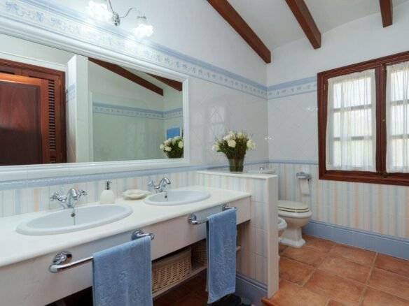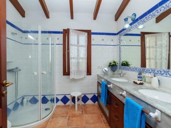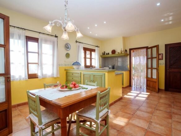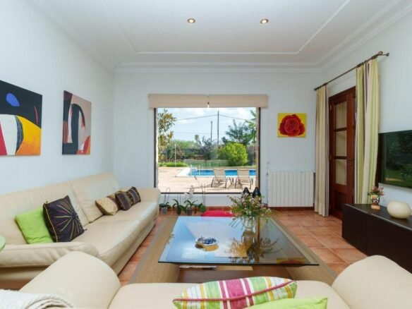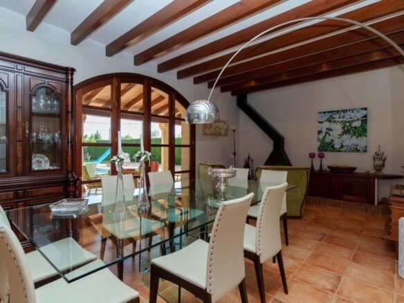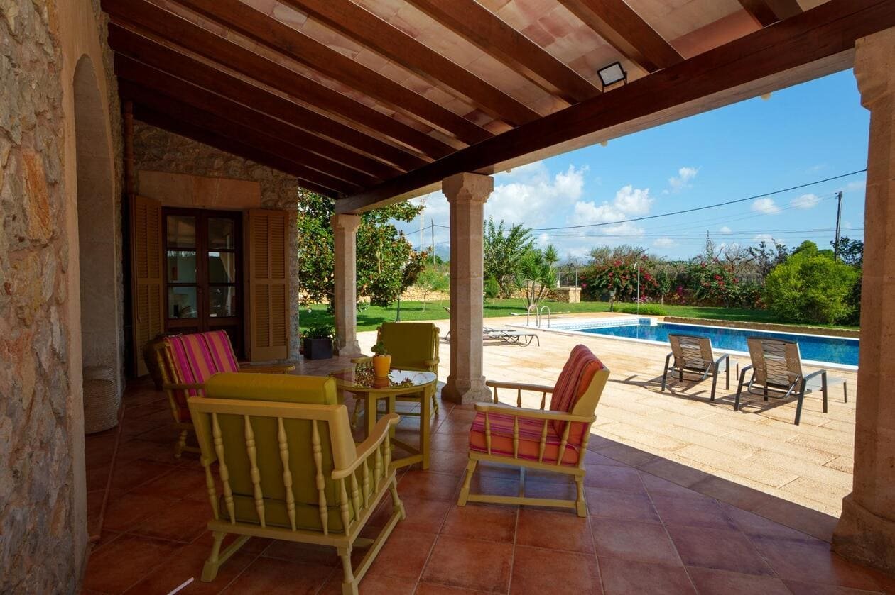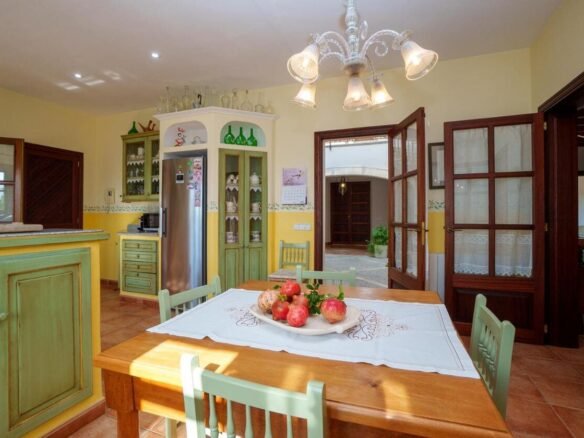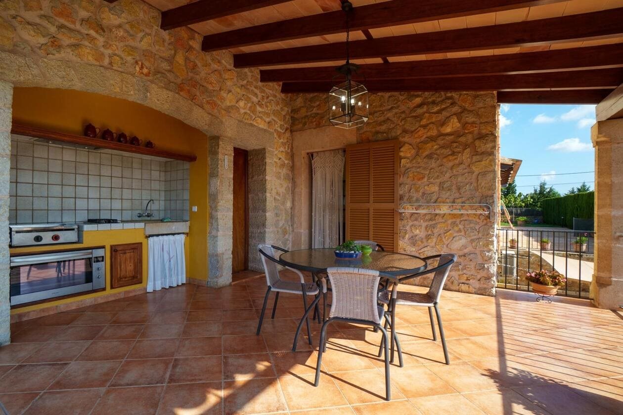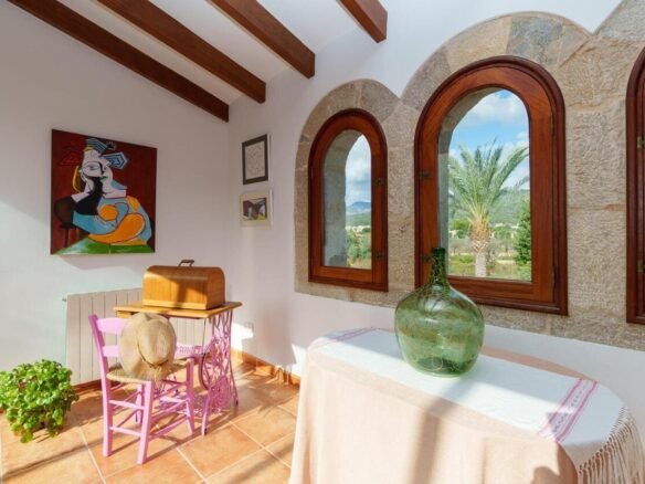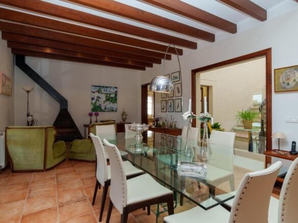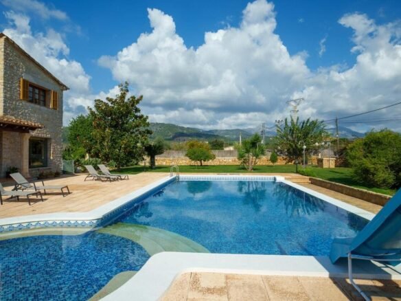 Espectacular Vivienda con Encanto Mallorquín, Piscina y Vistas a la Tramuntana..Se vende magnífica propiedad de 414,44 m² construidos en dos plantas, ubicada en una tranquila zona rural entre Inca y Lloseta, a pocos kilómetros de la autopista y con acceso por camino asfaltado. Construida en 1999 con materiales de alta calidad, combina el estilo tradicional mallorquín con todas las comodidades modernas...Distribución:..Planta sótano: Garaje cerrado con capacidad para dos vehículos, con escalera interior de acceso a la planta principal...Planta baja: Recibidor, cocina independiente, un baño completo, un dormitorio, sala de estar, y un amplio comedor con chimenea y vistas directas al patio central y a la piscina..El corazón de la vivienda es un auténtico patio mallorquín de guijarros, de 30 m², cubierto por un lucernario que baña de luz natural toda la casa, creando un ambiente acogedor y único...Planta superior: Cuatro dormitorios y dos baños completos. Todas las habitaciones se comunican a través de un amplio distribuidor con vistas al patio central, destacando los ventanales de piedra con espectaculares vistas a la Sierra de Tramuntana y a la piscina...Características destacadas:..Parcela rectangular de 6.000 m², totalmente cercada, con árboles frutales y amplias zonas exteriores...Piscina salina de 72 m² (6x12) con zona de terraza...Zona trasera pavimentada con capacidad para aparcar hasta 15 vehículos...Entrada con puerta automática, portero automático y suelo exterior de piedra mallorquina...Aislamiento excelente gracias al uso de termoarcilla, fachada de piedra natural, forjado sanitario de 80 cm, y ventanas Climalit de doble cristal con carpintería de teca...Calefacción por gasoil en toda la casa y aire acondicionado en comedor y sala de estar...Sistema de energía con placas solares, toda la propiedad funciona con electricidad, excepto la barbacoa (gas)...Internet fibra óptica, tomas de TV en toda la vivienda...Agua potable del pueblo con sistema de filtrado por sal + conexión independiente para riego...Aljibe de 50 toneladas para almacenamiento de agua potable...Esta vivienda es ideal para quienes buscan privacidad, confort y un estilo de vida mediterráneo auténtico, rodeado de naturaleza pero con fácil acceso a servicios y comunicaciones...¡Una oportunidad única de vivir en una casa con alma mallorquina y prestaciones de primer nivel!