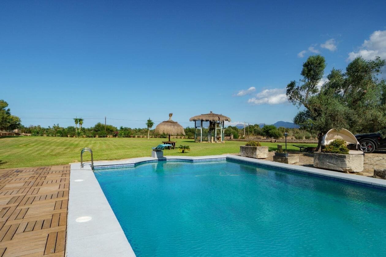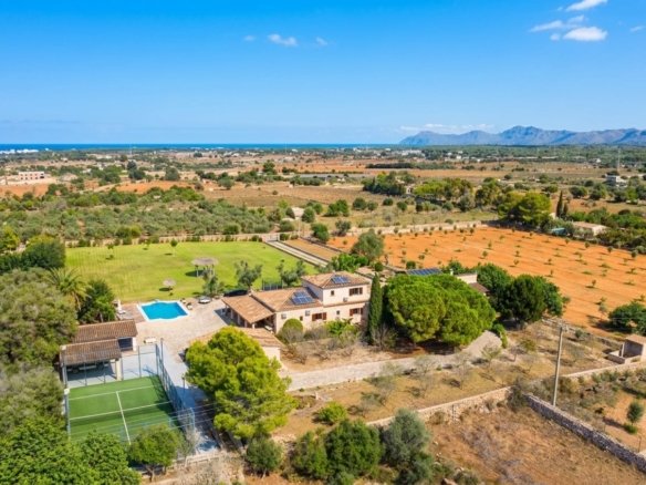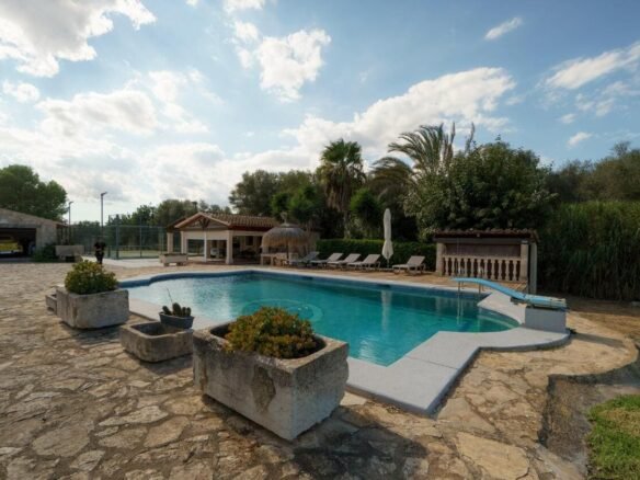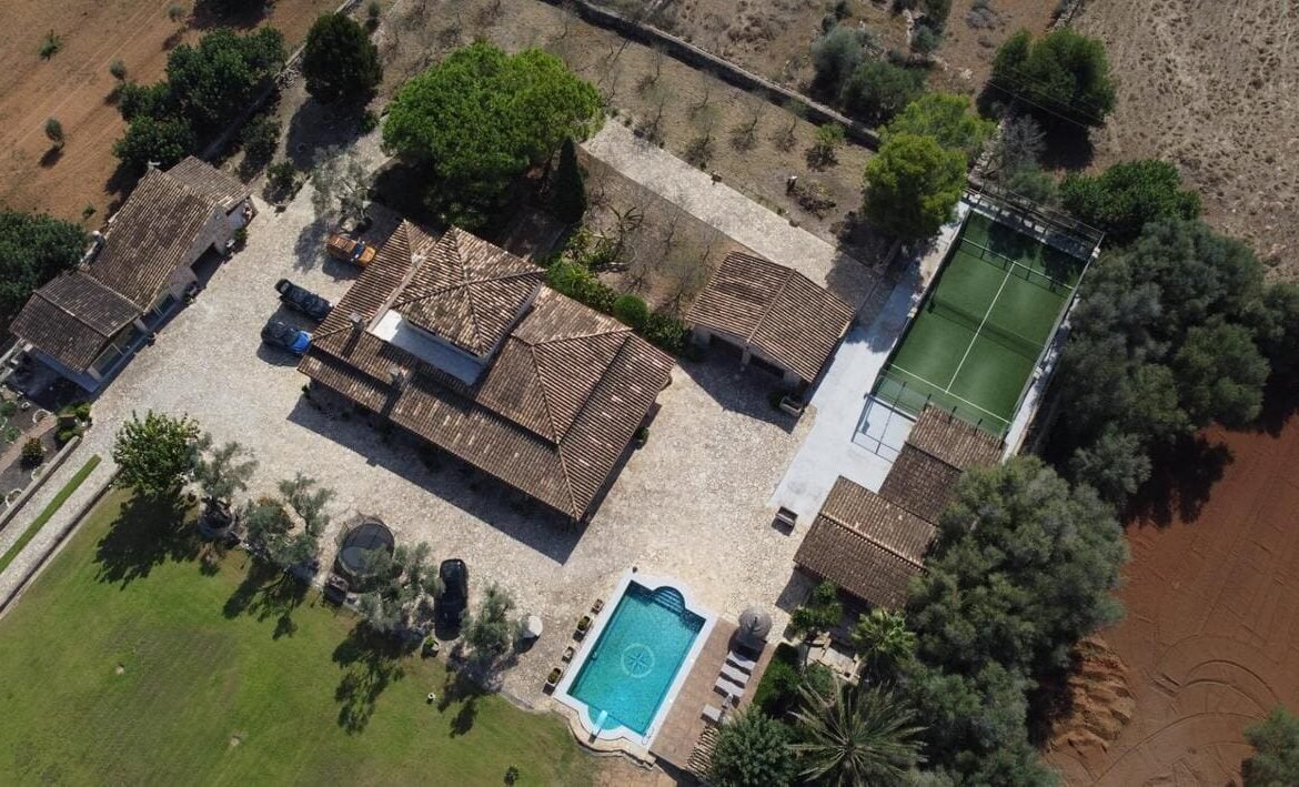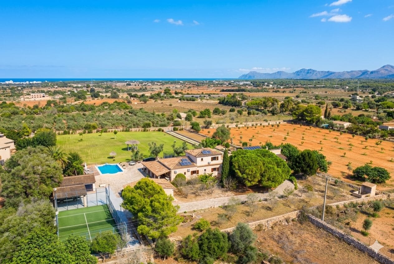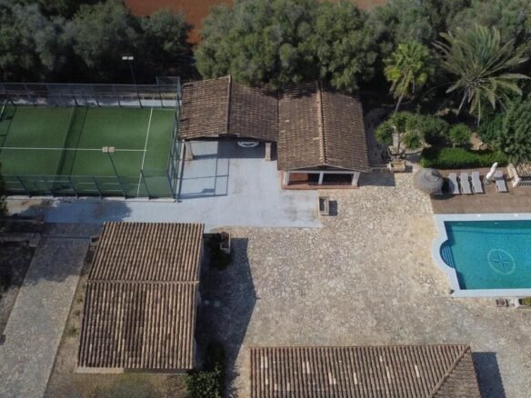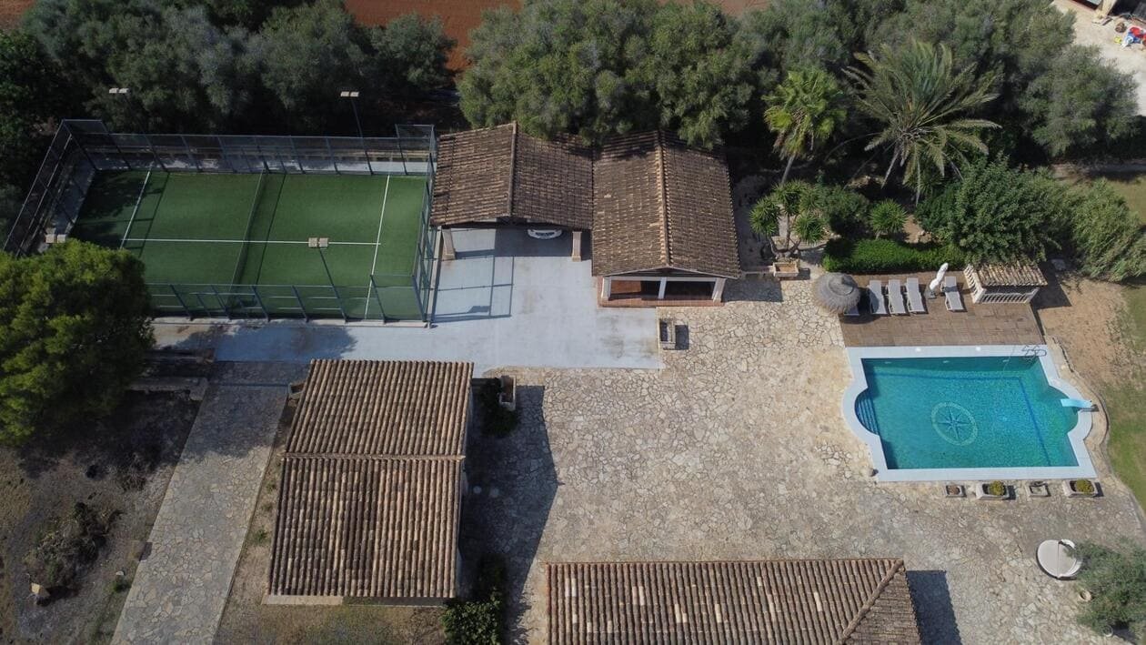 🏡 Espectacular finca rústica con encanto mediterráneo y todas las comodidades modernas..Descubre esta impresionante propiedad situada en un entorno natural y tranquilo, ideal para quienes buscan privacidad, espacio y calidad de vida. La finca combina a la perfección el estilo tradicional mallorquín con acabados contemporáneos, ofreciendo un ambiente cálido y acogedor...La casa principal cuenta con una amplia distribución, techos con vigas de madera, suelos de piedra y grandes ventanales que inundan los espacios de luz natural. En el exterior, se puede disfrutar de una magnífica zona ajardinada con piscina, terraza cubierta, comedor al aire libre y zona chill-out perfecta para relajarse o recibir invitados...Además, la propiedad dispone de una pista deportiva, aparcamiento privado, y varias edificaciones anexas, ideales como casa de invitados, gimnasio o taller...El terreno, completamente vallado, ofrece amplias zonas verdes, jardines cuidados y árboles maduros que aportan sombra y frescor durante todo el año...📍 Ubicación: En una zona tranquila, con fácil acceso a las principales carreteras, cerca de servicios, restaurantes y a pocos minutos de las playas..📐 Superficie del terreno: 8970m2.🏠 Superficie construida: 1074m2.🛏 Habitaciones: 4.🛁 Baños: 4.💧 Extras: Piscina, pista de pádel, porches, zonas ajardinadas, garaje...✨ Una propiedad única que combina elegancia, confort y naturaleza — perfecta como residencia familiar o como inversión para turismo rural.