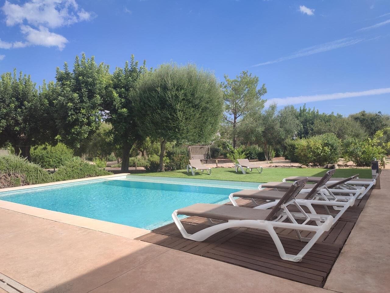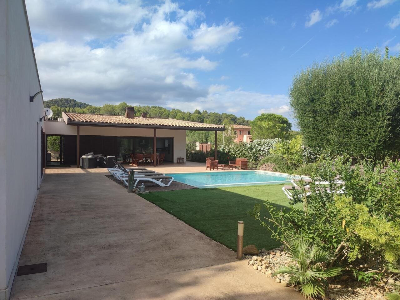 Villa en parcela de más de 2000m2 en Crestatx cerca de MySchool. La casa de 180m2 ofrece en la casa principal 2 dormitorios y dos baños con ducha, salón-comedor con chimenea y la cocina. Aire acondicionado (frio/calor) en cada habitación. En otra parte de la casa hay un estudio con otro dormitorio con su ducha y pequeña cocina.Piscina de sal (4mx7m), agua propia de pozo. Garaje, terrazas cubiertas y precioso jardín.Licencia vacacional para 6 plazas.La villa está construida en el solar de 1000m2. Otra parte del solar queda vacía para la construcción de una casa nueva o bien para aumentar los M2 de la casa existente.En el solar al lado se puede construir una casa de 250m2 con piscina.La propiedad se encuentra al final de una calle sin salida. Por lo tanto, se encuentra en una situación tranquila.Crestatx es el lugar ideal para las familias con niños o para aquellos que simplemente quieren escapar del estrés de la vida cotidiana.El pueblo de Sa Pobla (con todos los servicios) está a sólo 5 minutos en coche. A las playas de Alcudia se necesita un máximo de 15 minutos en coche y al pueblo de Pollenca 10 minutos.El comprador debe pagar pagar 10% de IVA encima del precio, el impuesto de ITP de 8% no se paga. Condiciones alquiler:2600€/mes + gastos Un mes de depósitoUn mes comisión inmobiliaria