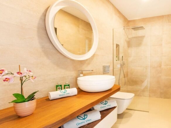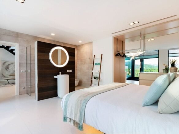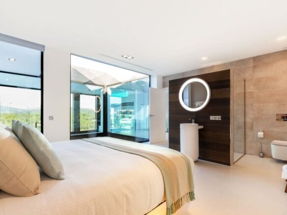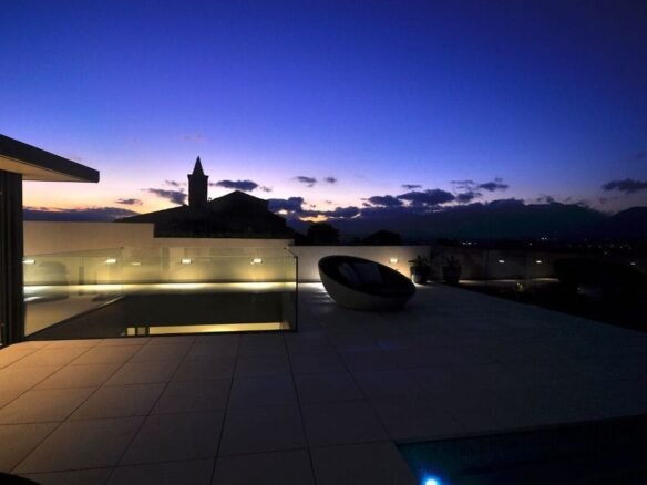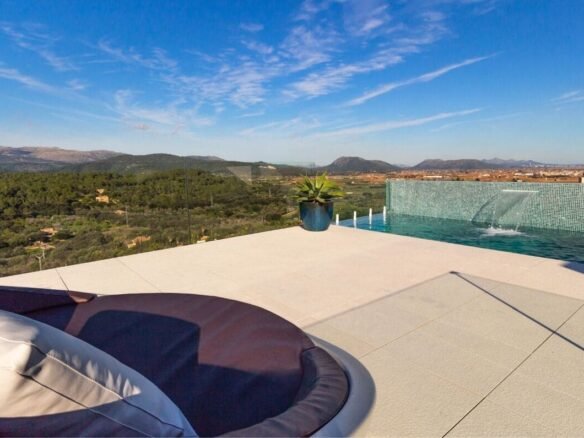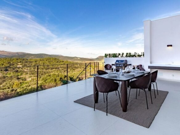 La maravillosa casa está situada en Búger y cuenta con una hermosa arquitectura moderna en un entorno rural. Con un impresionante interior y exterior, en la casa se pueden alojar hasta 8 personas. La propiedad consta de un salón, una cocina bien equipada, 4 dormitorios (3 con una cama king-size cada uno y 1 con dos camas individuales) así como 5 baños. Los servicios adicionales incluyen Wi-Fi, aire acondicionado, un televisor y una trona. Empieza el día en tu terraza privada y admira los hermosos alrededores y la vista de la montaña y refréscate en la piscina durante los días más cálidos. El jacuzzi en la terraza no se caliente.Disfruta de las comidas preparadas en casa al aire libre y usa tu propia barbacoa privada. El supermercado más cercano está a sólo 3 minutos andando, mientras que la cafetería y el restaurante más cercanos también se encuentran a poca distancia (120 metros y 200 metros). Para una mayor variedad de bares, restaurantes y cafeterías también puedes conducir hasta el pueblo de Sa Pobla (a unos 4 km). La playa más cercana, la Playa de Muro, está a 20 minutos en coche (18,5 km).Hay aparcamiento en la calle. La propiedad tiene un garaje disponible para el estacionamiento. Las sábanas y las toallas están incluidas en el precio. No se admiten mascotas.Ten en cuenta que no se permite ningún tipo de fiesta o evento.Número de licencia: ETV8205, Nombre: OLIVERA