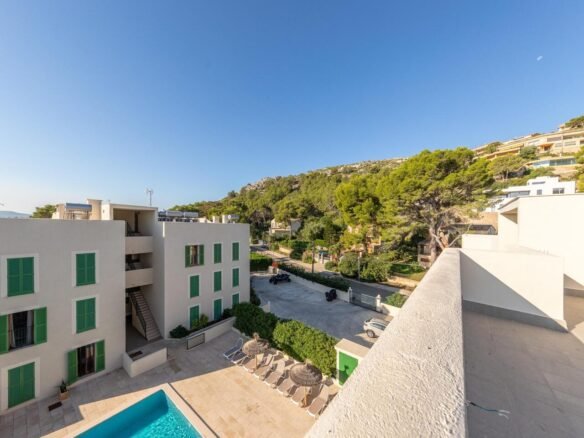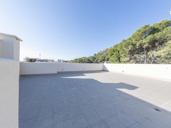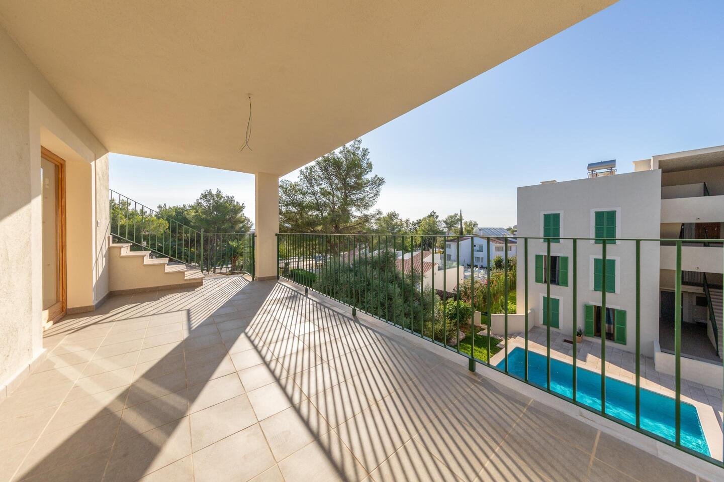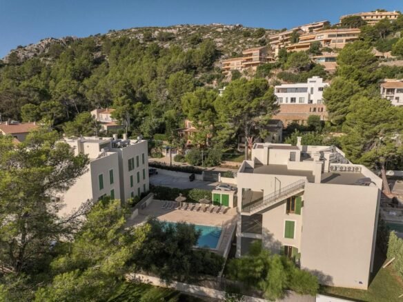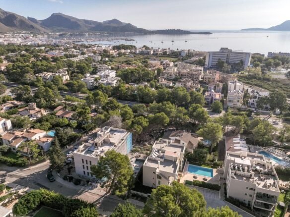 Video en https://youtu.be/o1-Nf8HPEW0?feature=sharedLe presentamos piso recién construido de 142,35m2 con la terraza cubierta de 20,20m2 y con la azotea privada de 130m2. El piso en la segunda planta se distribuye en la cocina (equipada con horno, nevera, lavavajillas de marca TEKA) y está abierta al salón-comedor climatizado con aire acondicionado (frio/calor). 4 dormitorios dobles, equipados con aire acondicionado (2 de ellos con los baños en-suite con ducha) y otro baño con ducha para compartir entre otros dos dormitorios climatizados.Armarios empotrados, cuarto de lavadora. Desde la terraza privada se accede a la azotea soleada, también privada, con vistas a las montañas.Acabados:Carpintería exterior:Carpintería exterior de madera de pino norte pintado en color verde claro.Puerta de acceso a la vivienda de madera maciza con cerradura de seguridad.Carpintería interior:Puertas: Chapada con madera de pino norte sin lacar, con marco y tapajuntas macizos.Armarios: Empotrados, frontal chapado en pino norte, estante maletero y barra.Cerrajería: Barandilla hierroPersianas: Persianas mallorquinas de madera pintada.Vidriería: Doble acristalamiento Cámara 464 en ventanas exteriores.El edificio con ascensor de 6 vecinos comparte la piscina comunitaria con otro edificio con 9 vecinos. Cada piso tiene su plaza privada de parking. Gastos de comunidad son unos 1400€/anuales. La propiedad está vallada y la entrada a la comunidad es privada con llave. La calle es tranquila y sin salida. La ubicación del piso es inmejorable: a solo 10 minutos caminando se accede a la preciosa playa de Port Pollensa con su paseo y restaurantes.