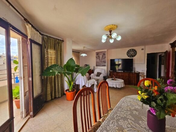Se vende un amplio piso con preciosas vistas a las montañas y pueblo en Inca..El piso en la 5.planta en el edificio con 25 vecinos cuenta con 2 ascensores. La vivienda de 130m2 tiebe mucho potencial: una entrada, 3 dormitorios, un baño con ducha, un aseo, cocina independiente, salón-comedor con vistas. El piso es habitable, pero necesita reforma, un presupuesto aproximado de 20.000€: actualizar electricidad, cocina, baños, ventanas y puertas, suelo. .La zona está bien para familias: parques y colegios alrededor. Suficiente aparcamiento al lado. Posibilidad de alquilar una plaza de parking.
