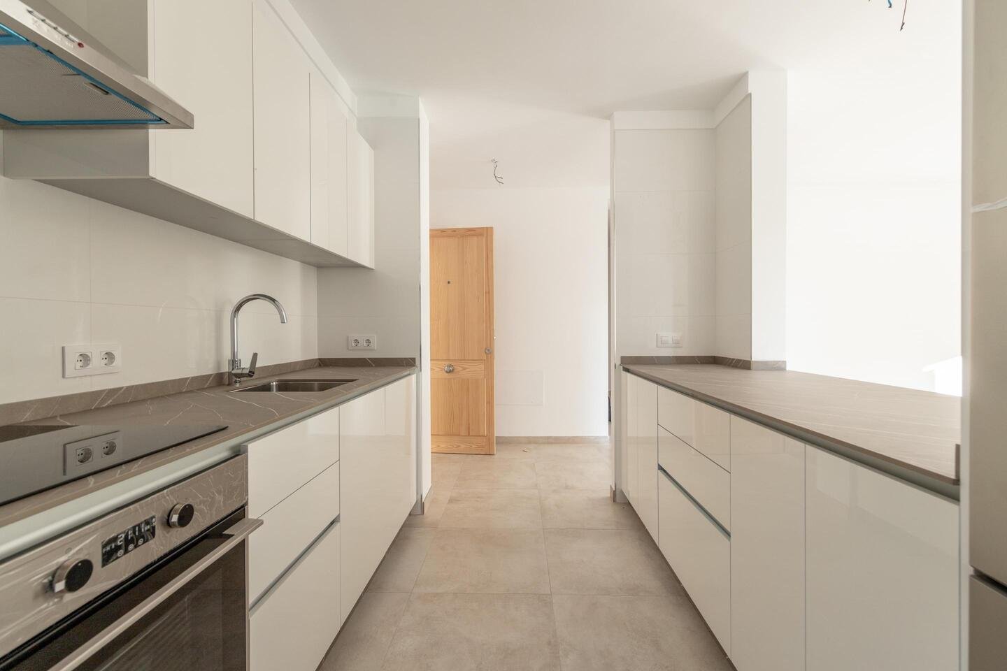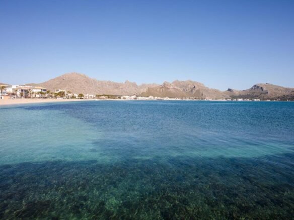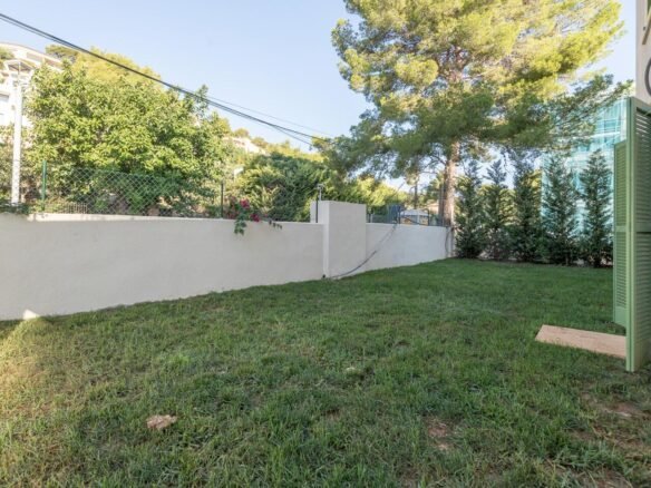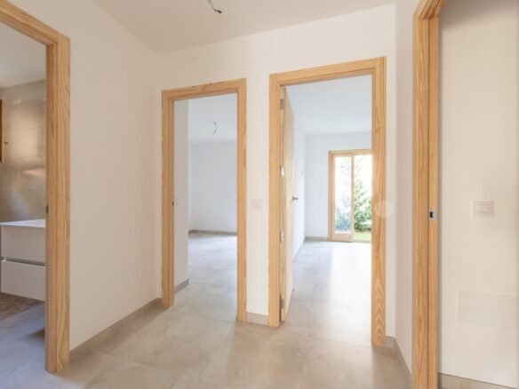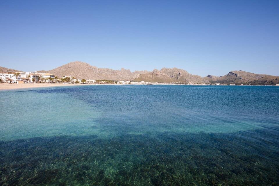 El video se puede ver en https://youtu.be/o1-Nf8HPEW0?feature=shared..Le presentamos la planta baja recién construida de 108,35m2 con la terraza cubierta de 20,20m2 y jardín privado de unos 130m2. El piso se distribuye en la cocina (equipada con horno, nevera, lavavajillas de marca TEKA) que está abierta al salón-comedor climatizado con aire acondicionado (frio/calor). 3 dormitorios dobles, equipados con aire acondicionado (1 de ellos con el baño en-suite con ducha) y otro baño con ducha para compartir entre otros dos dormitorios climatizados.Armarios empotrados, cuarto de lavadora.Acabados:Carpintería exterior:Carpintería exterior de madera de pino norte pintado en color verde claro.Puerta de acceso a la vivienda de madera maciza con cerradura de seguridad.Carpintería interior:Puertas: Chapada con madera de pino norte sin lacar, con marco y tapajuntas macizos.Armarios: Empotrados, frontal chapado en pino norte, estante maletero y barra.Cerrajería: Barandilla hierroPersianas: Persianas mallorquinas de madera pintada.Vidriería: Doble acristalamiento Cámara 464 en ventanas exteriores.El edificio con ascensor de 6 vecinos comparte la piscina comunitaria con otro edificio con 9 vecinos. Cada piso tiene su plaza privada de parking. Gastos de comunidad son unos 1400€/anuales. La propiedad está vallada y la entrada a la comunidad es privada con llave. La calle es tranquila y sin salida. La ubicación del piso es inmejorable: a solo 10 minutos caminando se accede a la preciosa playa de Port Pollensa con su paseo y restaurantes.