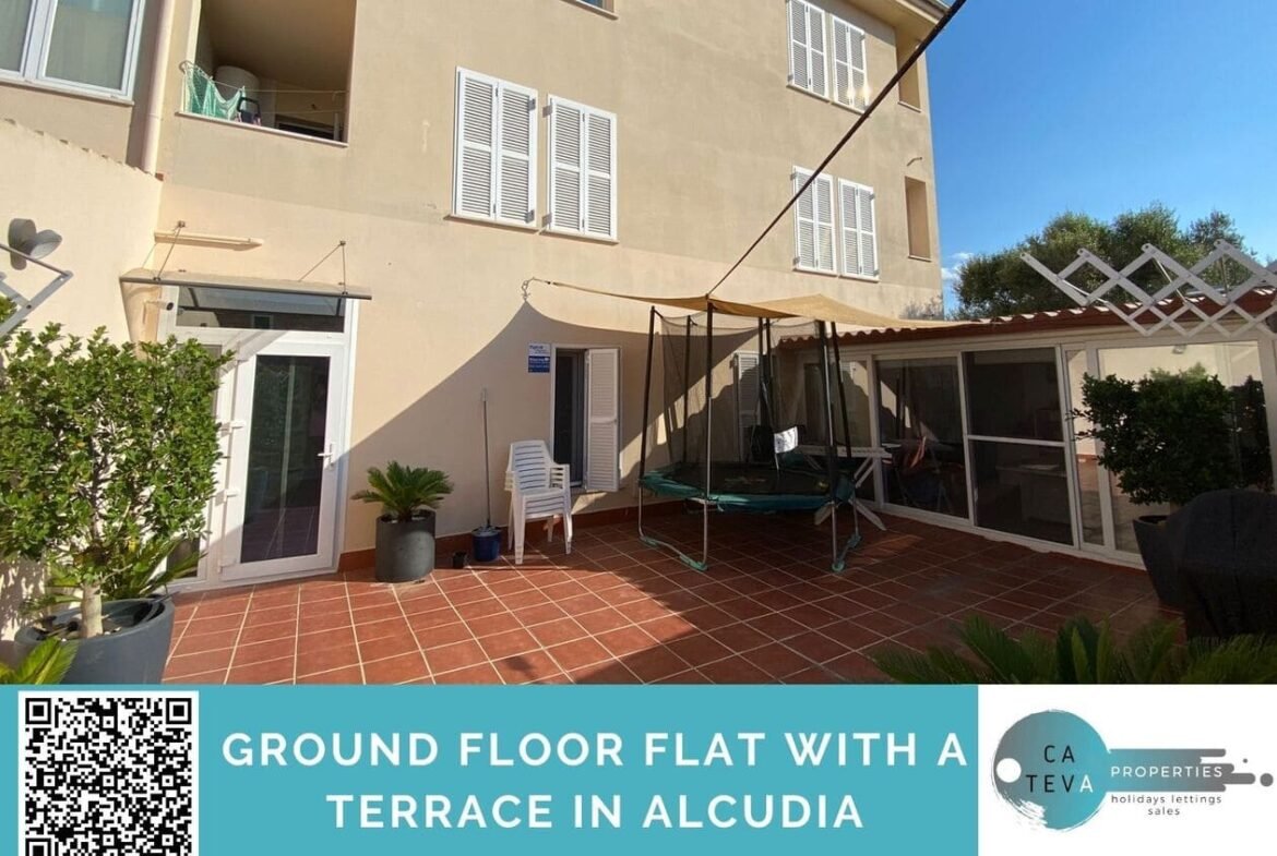 Planta baja en Alcudia con la terraza de 60m2. A 50 metros de Eroski y Muller. A 100 metros de las Murallas. Una calle sin salida y muy tranquila. Una ubicación ideal, cerca de todos los servicios. A 1 km del mar. 125 metros habitables, distribuidos en 3 dormitorios (todos con aire acondicionado). Un baño con bañera en Suit. Un baño con ducha en el pasillo. El dormitorio principal tiene una salida al porche acristalado y a la terraza. Todos los dormitorios dan a la terraza - de modo que no se escucha ningún ruido de la calle. Amplio salón con aire acondicionado, cocina con salida a la terraza. Totalmente equipada con todos los electrodomésticos. Las ventanas de los dormitorios, porche y de la cocina son de pvc. El apartamento tiene instalada un sistema de calefacción centralizada (con hidro estufa de pellets) con radiadores de agua. La terraza tiene un trastero en perfectas condiciones con lavadora y secadora. El apartamento está perfecto para entrar a vivir como vivienda habitual o como vivienda vacacional.