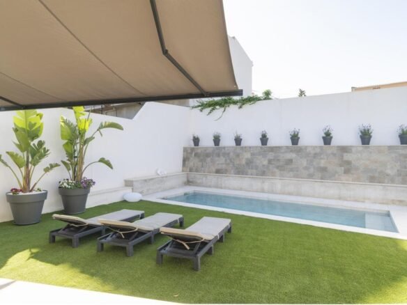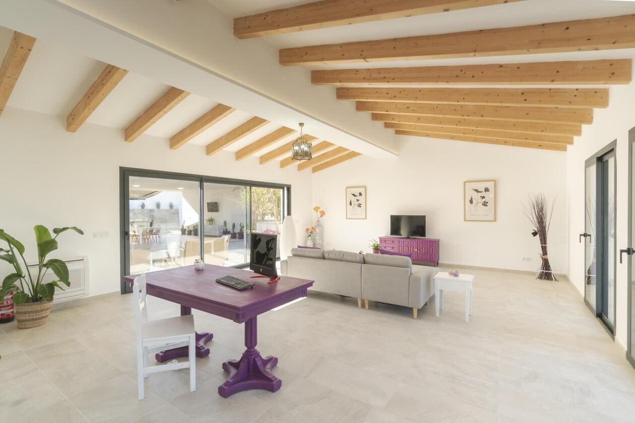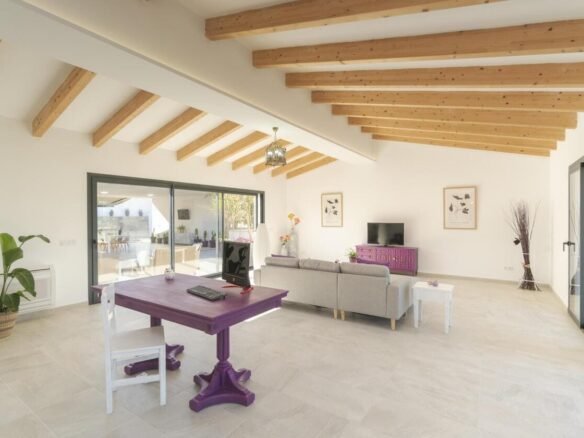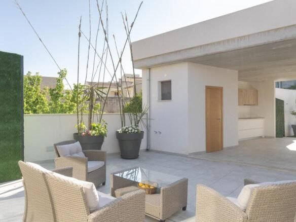Vivienda de nueva construcción de altas calidades en Santa Margalida listas para entrar a vivir.¿Comprar una casa con las camas hechas y con la cafetera lista para hacer un café?¡Solo lleven su maleta y entren a vivir!Esta vivienda es una oportunidad única ya que están equipadas al máximo.En el solar de 341m2 le ofrecemos esta vivienda de 2 plantas de 243m2 construidos. Desde el aparcamiento se accede al recibidor con el salón con su baño de cortesía. La cocina con comedor están abiertos al salón con la chimenea. La zona de descanso en la planta baja cuenta con 3 dormitorios dobles con sus baños. Por la escalera se sube al patio con jardín y piscina donde puede relajarse y tomar el sol. En esta parte también hay un porche cubierto con su baño y zona de barbacoa.La vivienda se venden totalmente amueblada y equipada con todos los grandes electrodomésticos, pequeños electrodomésticos, menaje de cocina, ropa de cama, toallas. ¡Listas para vivir desde el primer día!Santa Margalida es un pueblo rural con un auténtico espíritu mediterráneo que encaja con aquellos que buscan un estilo de vida tranquilo. Dispone de todos los servicios para la vida diaria, incluyendo una escuela primaria y secundaria. Hay una conexión de autobús a Palma que funciona aproximadamente cada hora. El pueblo está a 11 km de la Bahía de Alcúdia y de las grandes playas de Can Picafort. Al precio hay que añadir 10% de IVA por ser obra nueva.